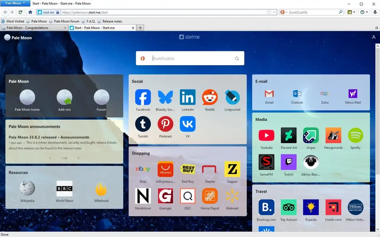 Pale Moon은 "나만의 브라우저, 나만의 방식"이라는 모토처럼 맞춤 설정, 안정성, 속도 면에서 최고의 조합을 제공합니다. Mozilla Firefox를 기반으로 개발되었으며, 엄선된 다양한 기능과 최적화를 갖추고 있습니다 . 하지만 가장 큰 차이점은 사용성입니다. Firefox는 멀티 프로세스 모드를 사용하는 반면, Pale Moon은 싱글 프로세스 모드를 사용합니다. 현재는 Goanna 브라우저 엔진을 사용하고 있으며, start.me와의 협업을 통해 사용자 정의 가능한 시작 페이지를 제공합니다. 기본 검색 엔진은 Google이나 Yahoo 대신 DuckDuckGo이며, Google의 위치 정보 엔진 대신 IP API 서비스를 사용합니다.